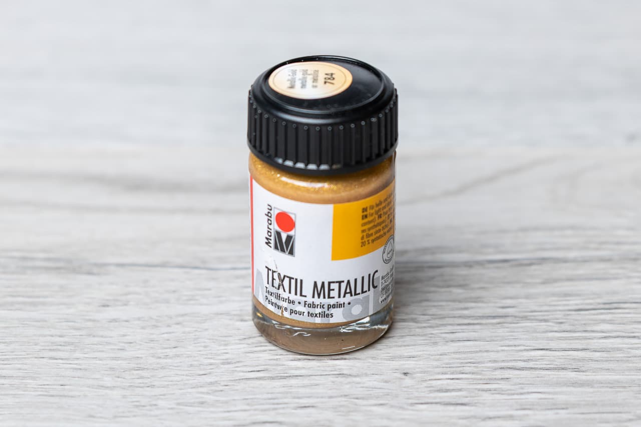 Aporte toques luminosos a sus proyectos textiles: con Marabu Textil Metallic puede crear efectos metálicos en oro o plata sobre algodón y tejidos mixtos. Esta pintura textil a base de agua hace que sus motivos brillen y resulta ideal para trabajos finos con plantillas, ya sea en fundas de cojín, bolsas, camisetas o accesorios.