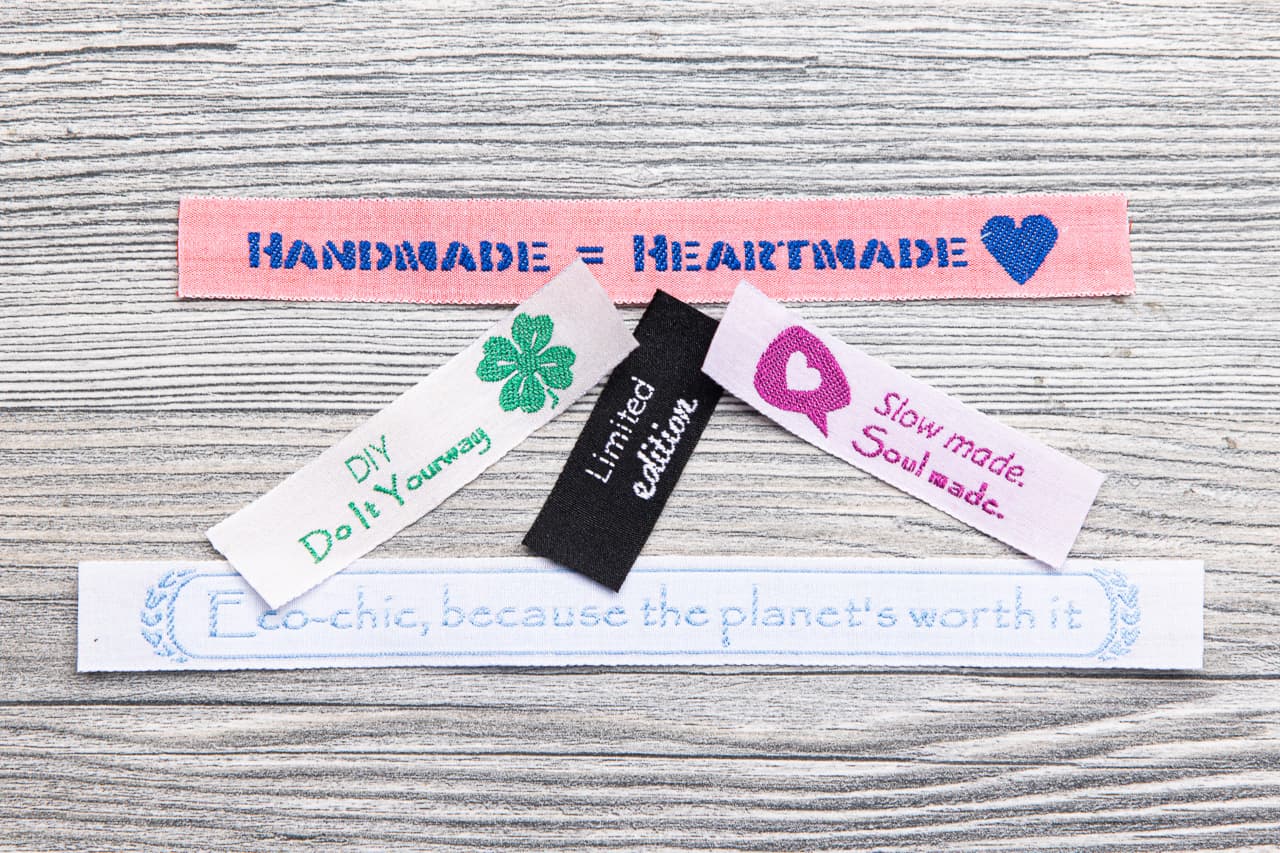 Si prefiere usar su propio mensaje, diseñe su etiqueta tejida directamente en nuestro configurador.